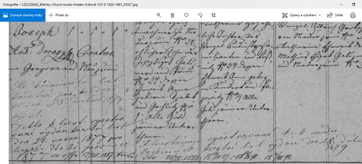 Ano zde po kliknutí se mi to zobrazuje čitelně (opakuji, že mi nejde o matriční záznam o rodičích, ale o poznámky pod v češtině), ve svém počítači to neotevírám. Ale omluvila jsem se již výše a zápis z obrázku jsem již přepsala. Pokud je i tak problém, prosím celý příspěvek smažte. Děkuji.
