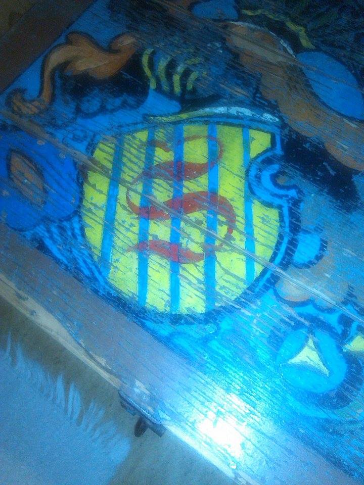 nevím, kam tento dotaz zařadit, ale dostalo se mi mileho ukolu. Známá mi poslala fotky nejspíše rodového erbu. Našla ho na truhle, ktera byla schovana na půdě jeji chaty ( nejspíše od roku 1955 ).