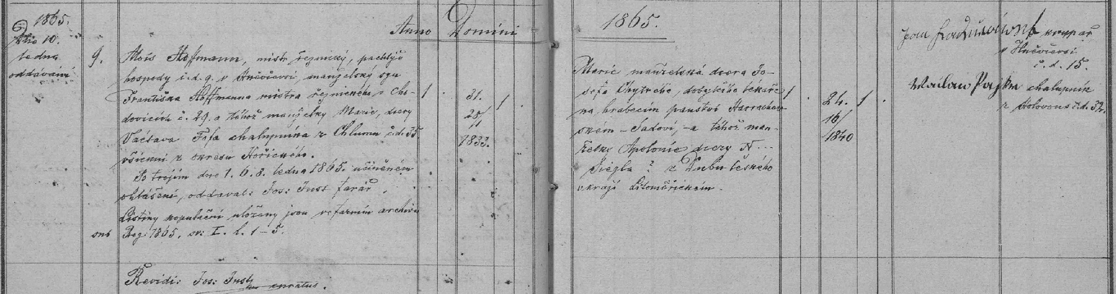Tak obcas se zazraky stavaji...nedalo mi to a jeste jednou jsem zkusila okouknout Hnevceves a nevim, jak to ze jsem minule nic nenasla...ale hnedka na me vyskocila svatba Marie a Aloise....tim padem mam podnet, kde hledat jeji narozeni...a i odpoved na to, ze se Marie narodila v roce 1840 a tim padem byla doopravdy manzelskou dcerou Josefa a Apollonie.