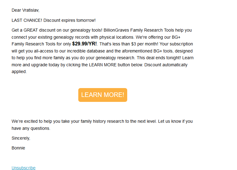 Jeden z mnoha otravných cizojazyčných e-mailů, alespoň 1x týdně. Nyní již automaticky do spamu....