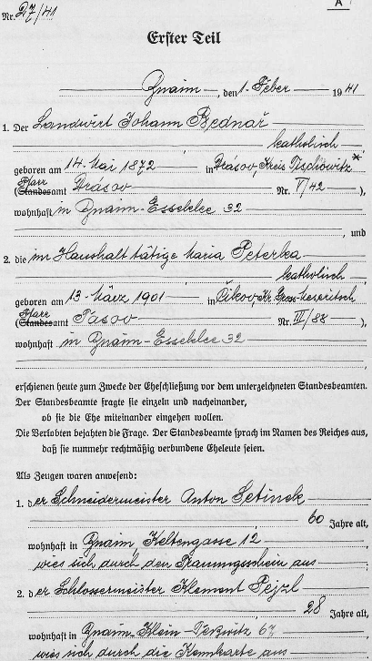 VYŘEŠENO Novější info o J.Bednářovi oddaném 1.2.1941 Znojmo