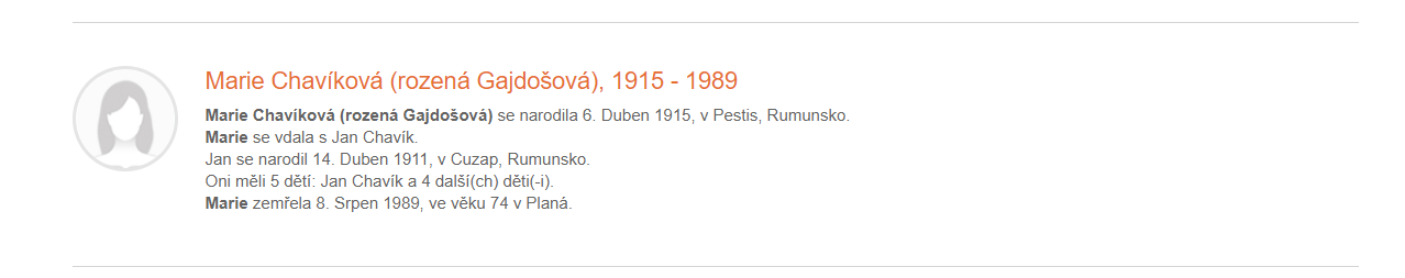 hledám osobu Marie Gajdošová, konkrétně "Marie Chavíková (rozená Gajdošová), 1915 - 1989"