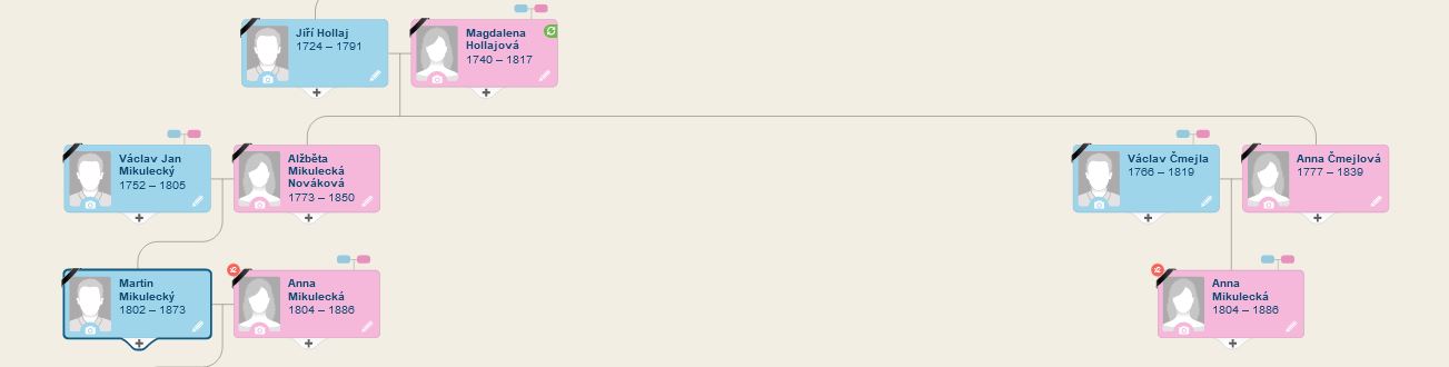 VratislavF píše:Dobrý den, víte někdo, proč nejde do MyHeritage zapsat sňatek bratrance a sestřenice , v mém případě navíc se stejným příjmením? Zkoušel jsem všechno možné, no výsledek stále zlý, hned vyskočí oznámení , že je osoba 2x, tak nevím.... Poradí někdo?