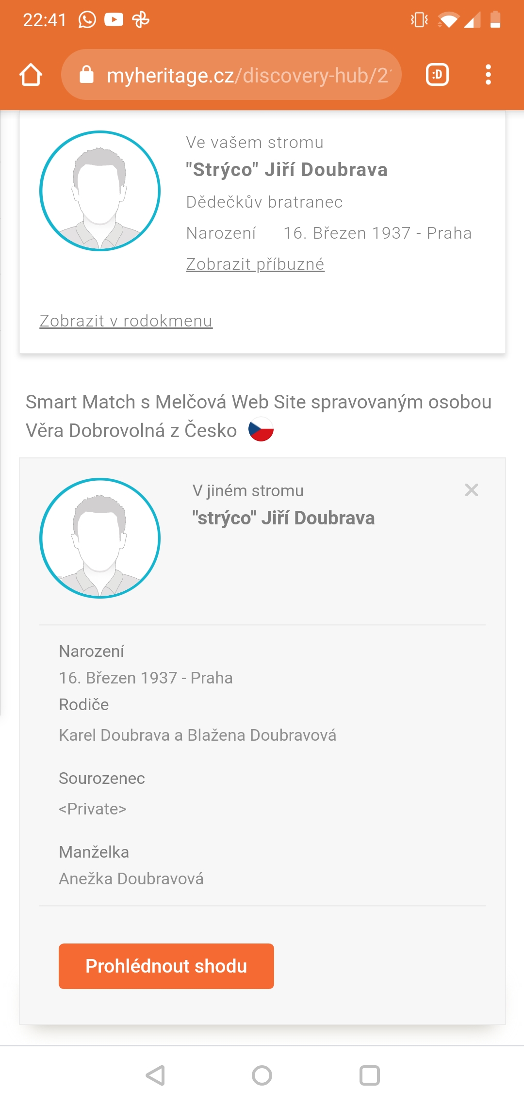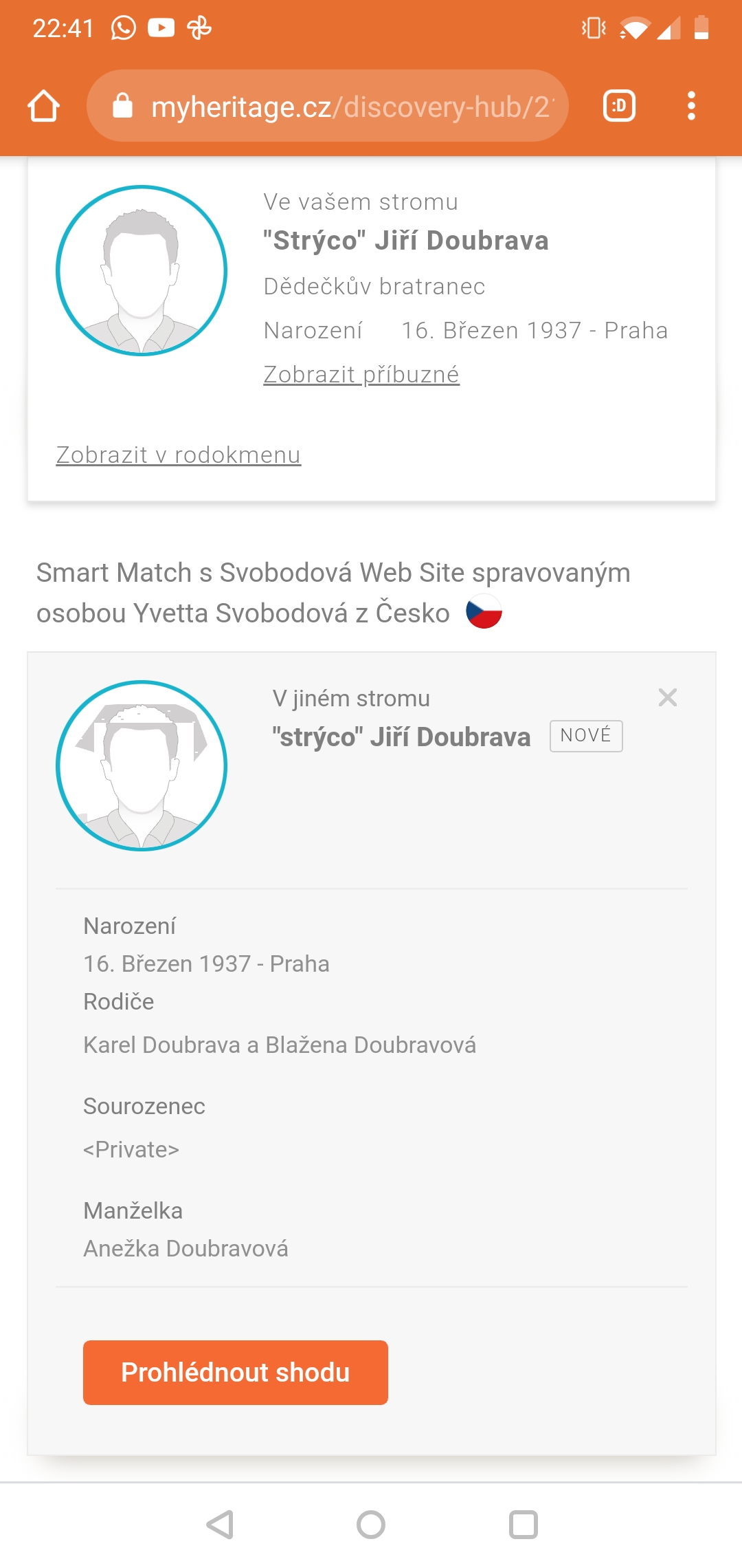Dobrý den, chtěl bych vas poprosit o kontak osob v příloze. Tyto mají v rodokmenu na myheritage dne 16.3. 1937 narozeneho Strýco Jiří Doubravu. Je to podle vseho nejstarsi nositel přijmeni v prime linii. Poprosim, kdyztak o předani meho kontaktu : lukas.doubrava(a)seznam.cz. Dekuji