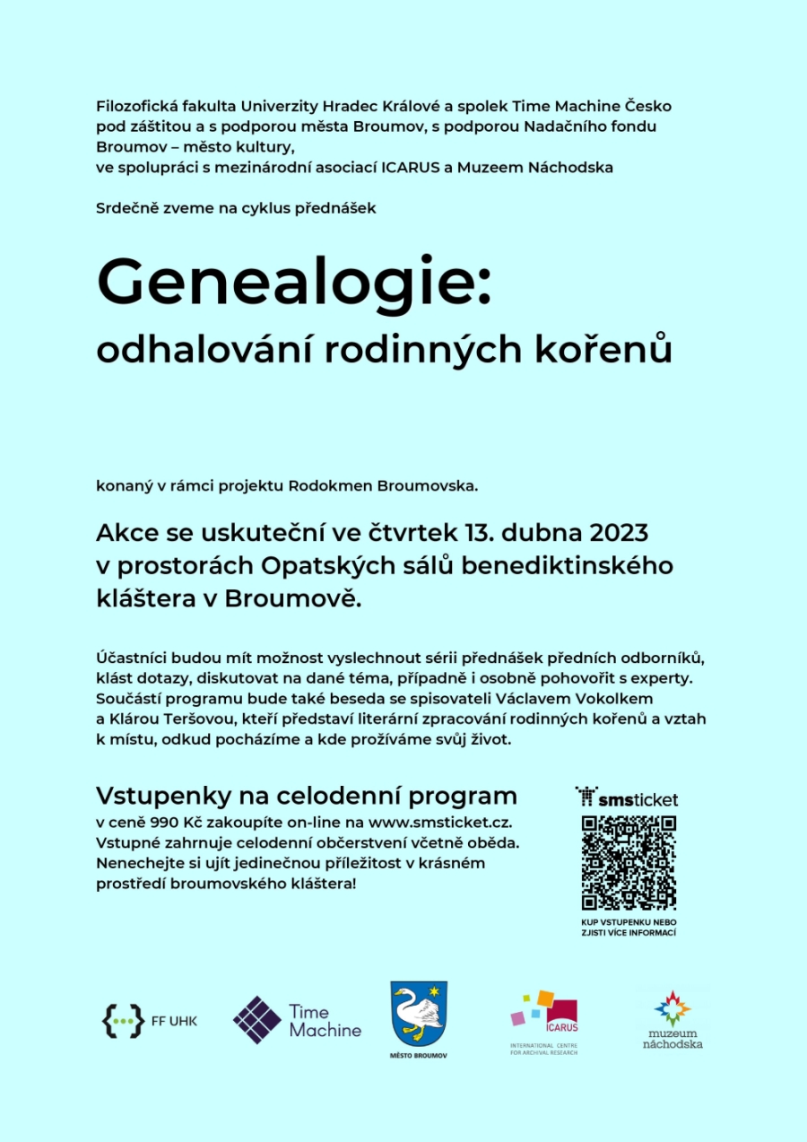 vstupenky: https://www.smsticket.cz/vstupenky/34867-genealogie-odhalovani-rodinnych-korenu
