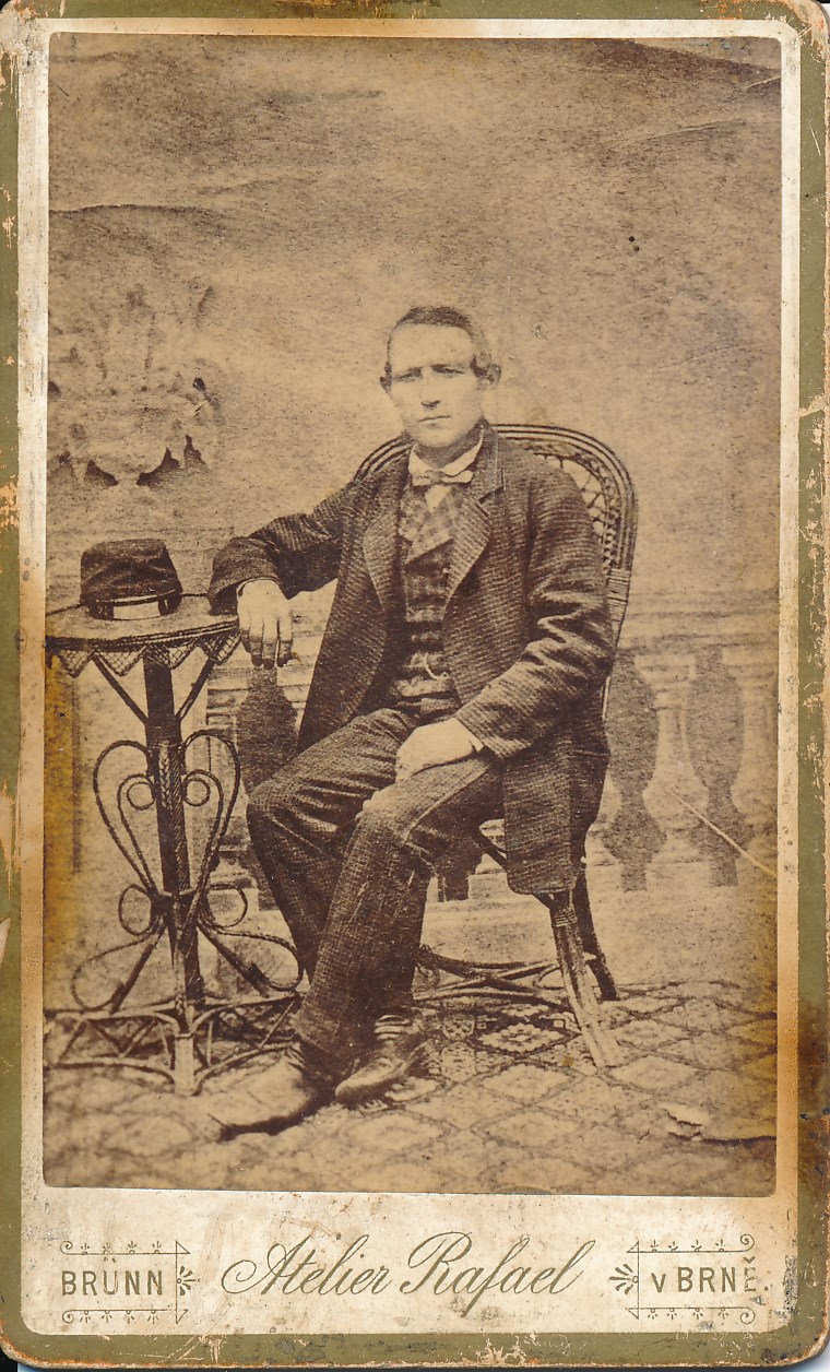 nevím, jestli prosím o pomoc ve správném diskuzním vláknu. Mám z pozůstalosti prababičky starou fotografii sedicího muže a potřeboval bych pomoc s odhadem přibližné doby pořízení této fotky. Mohlo by se jednat o 60. nebo 70. léta 19. století? Fotografie byla pořízena ve fotoateliéru Rafael, fungujícím v Brně od roku 1864.