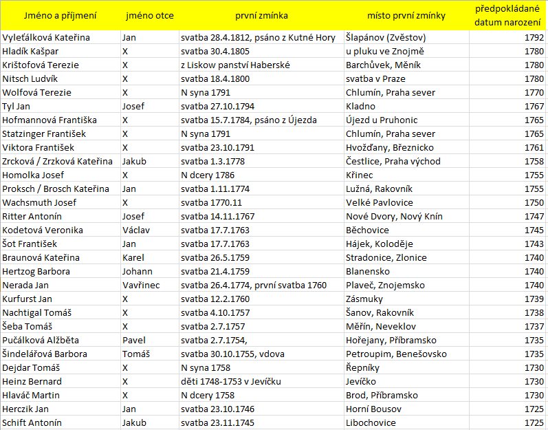 Více detailů je v příloze. Zde uvádím jen předpokládaný rok narození.