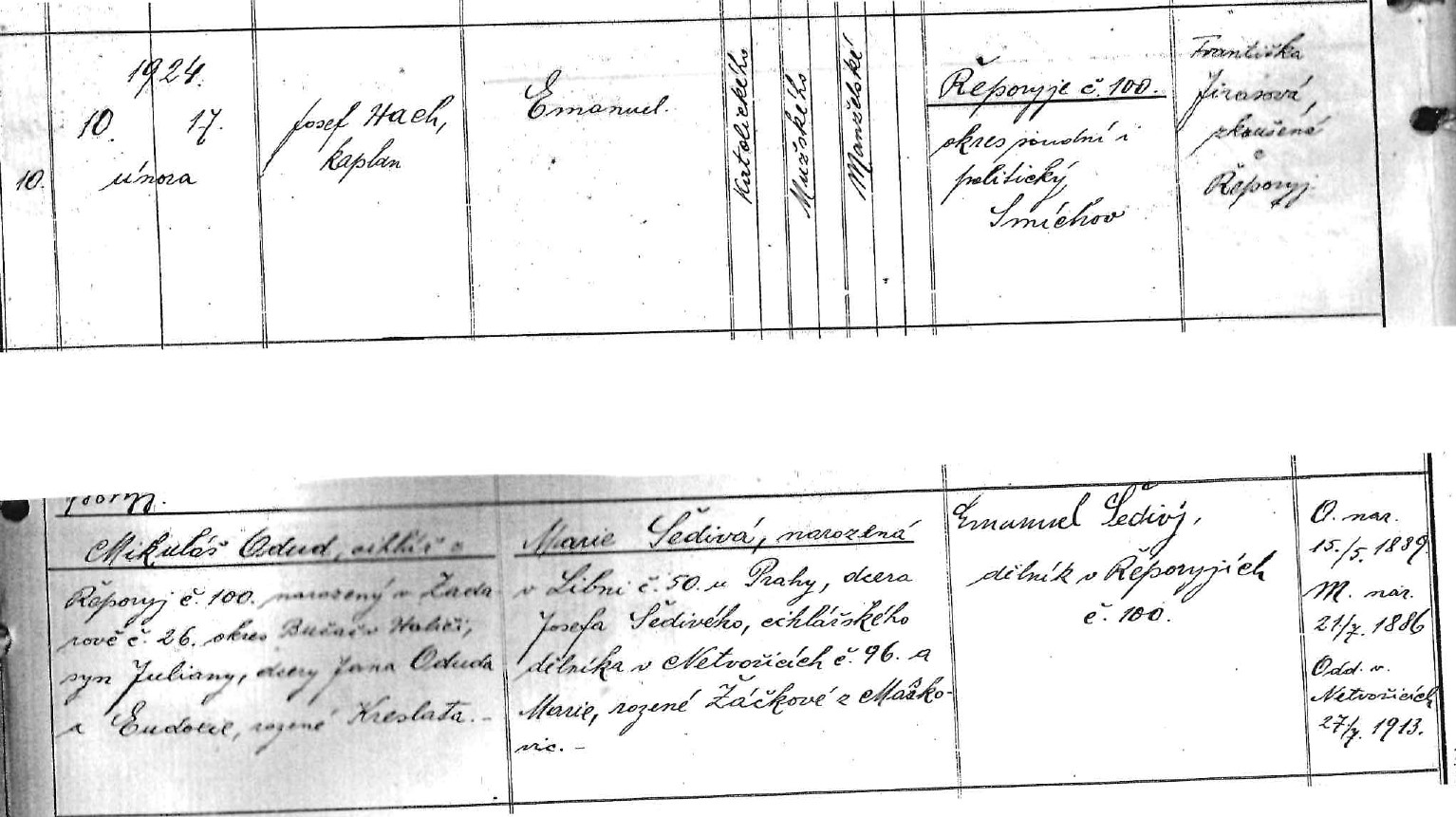 Narazil jsem na prapra Mikuláše ODUDA narozeného 12/5/1889 Kadarov okr. Halič země Bučač (Komarovsky)