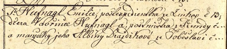 na Skřivanech a r. 1714 ji vdala za Ignáce Hufnagla, úředníka