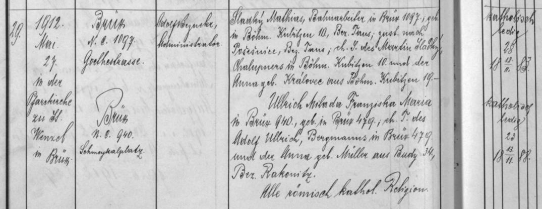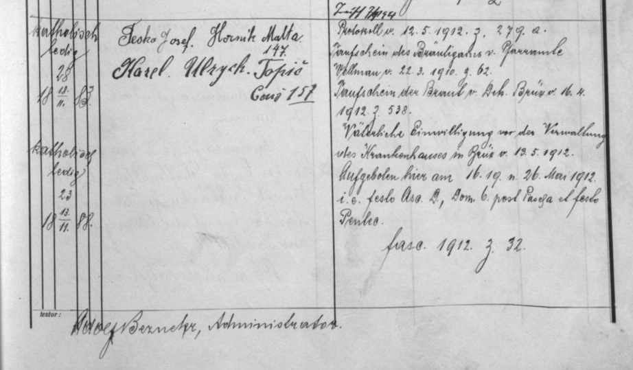 Děda se narodil 25. Září, 1913, Most č.p. 895, zemřel (přibližně) 1972 anebo 73 v nemocnici v Mostě (nějak těsně, než jsem šel do školy),