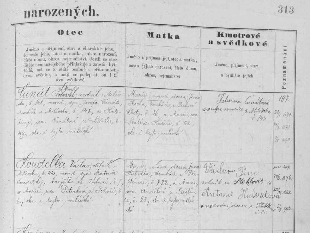 Re: Milevsko Václav a Marie Koudelkovi 1876