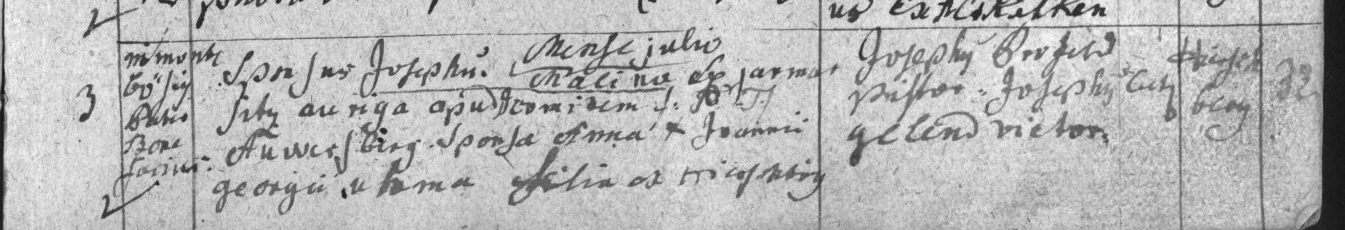 Sponsus Josephu. Malina ?? jarmar sitz auriga apud comidem ?? Auwersberg. Sponsa Anna + Joanni Georgu Uhma filia ex Hirschberg