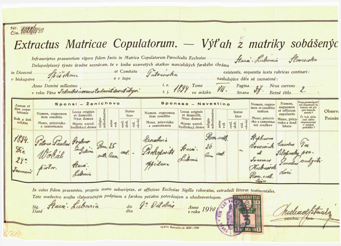 můžete mi prosím pomoci s rozluštěním místa narození ženicha z přiloženého oddacího listu?