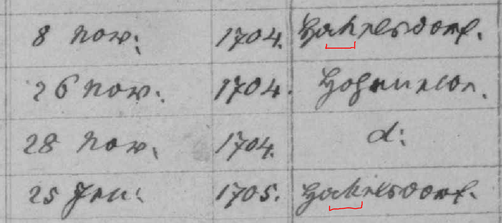 Další z vysvětlení může rovněž být i to, že si Vrchlabáci na faře psali jak slyšeli a napsali vláčně "Haklsdorf" spřežka-nespřezka, název-nenázev - to už dnes nezjistíme. Můj font má ještě různé varianty grafické podoby znaku, ale to snad Vám vysvětlovat nemusím. Originál z indexu přikládám k podrobnému prozkoumání přílohou - čmárání jsem se ale ani teď nevyhnul ;-) .