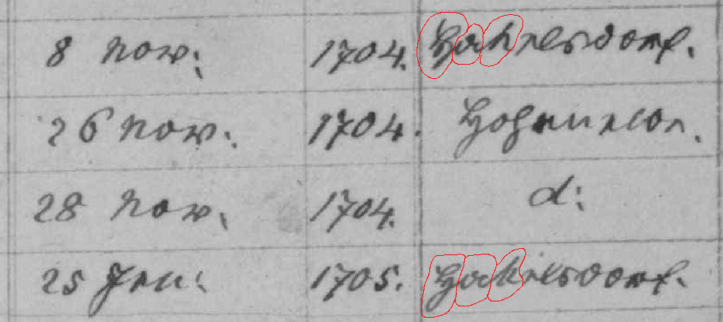 Zburgete, určitě víte, že v kurentu existuje několik složených písmen, mezi které se řadí i dvojice "ck". V této "grafické spřežce" písmeno "c" přechází volně do "k" - zdroj: http://genealogie.nka.cz. Ano, když se koukám na svůj srovnávací obrázek, tak jsem ve fontu dodatečnou editací nevyměnil psanou dvojici "c k" za spřežku "ck", takže uznávám, grafická podoba fontu může být poněkud matoucí, ale koukám, že ke zmatení nedošlo a lokalita byla určena správně, a na významu nebylo rovněž utrpěno.