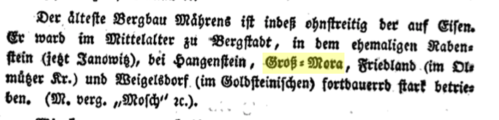 Ve starých knihách týkajících se vojenství jsem našla zmínky o Groß-Mora na Moravě, ale bez bližšího určení. Jen ze zmiňovaných obcí v kontextu mě to "navádí" na okres Bruntál. Ale je to strašně široký pojem a nic bližšího jsem nenašla.