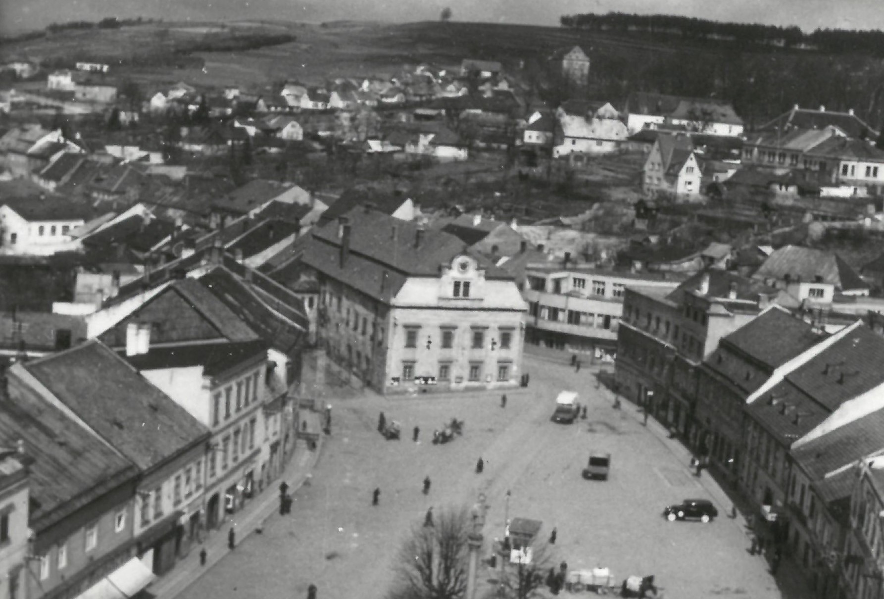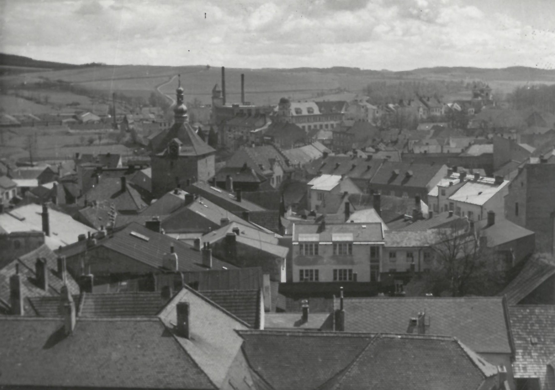 No jo, první fotka je fakt Pelhřimov, ale pohled na opačnou stranu - je to z kostelní věže přes bránu. Vzadu, vpravo od brány je malá věžička (dnešní Mountfield), víc napravo blíž k fotografovi je další věžička (Kohinor), fabrika s komíny už dnes neexistuje a úplně vpravo vzadu jsou věže kaple P. Marie Bolestné. Pro Pelhřimov hodně netypická fotka.