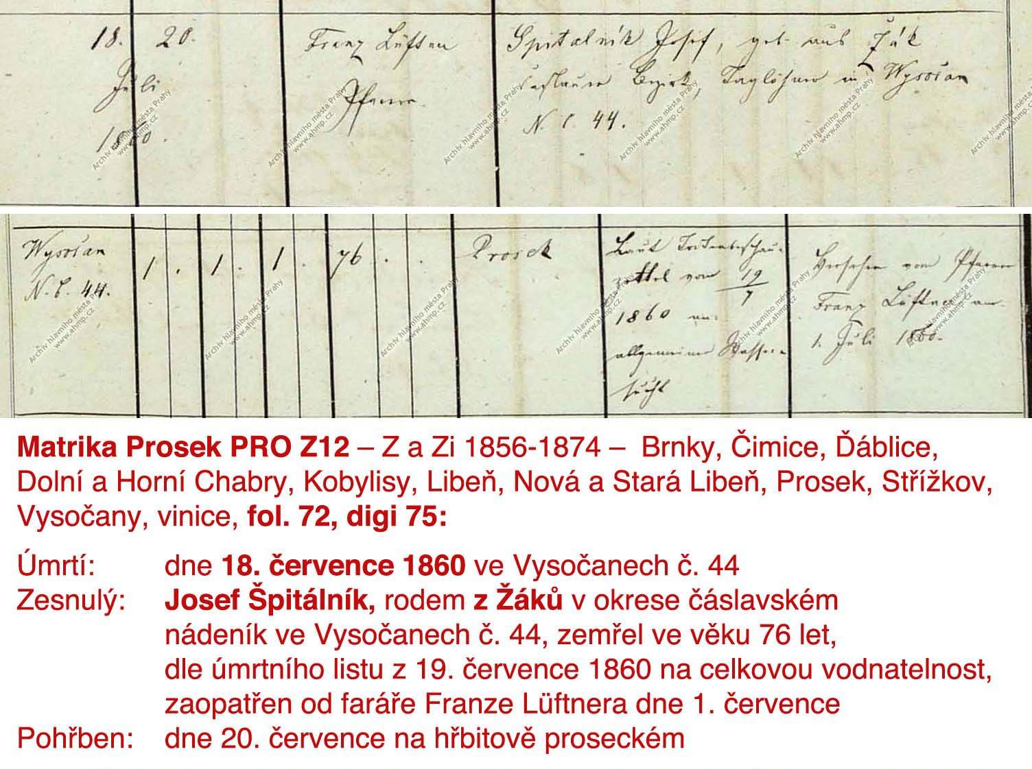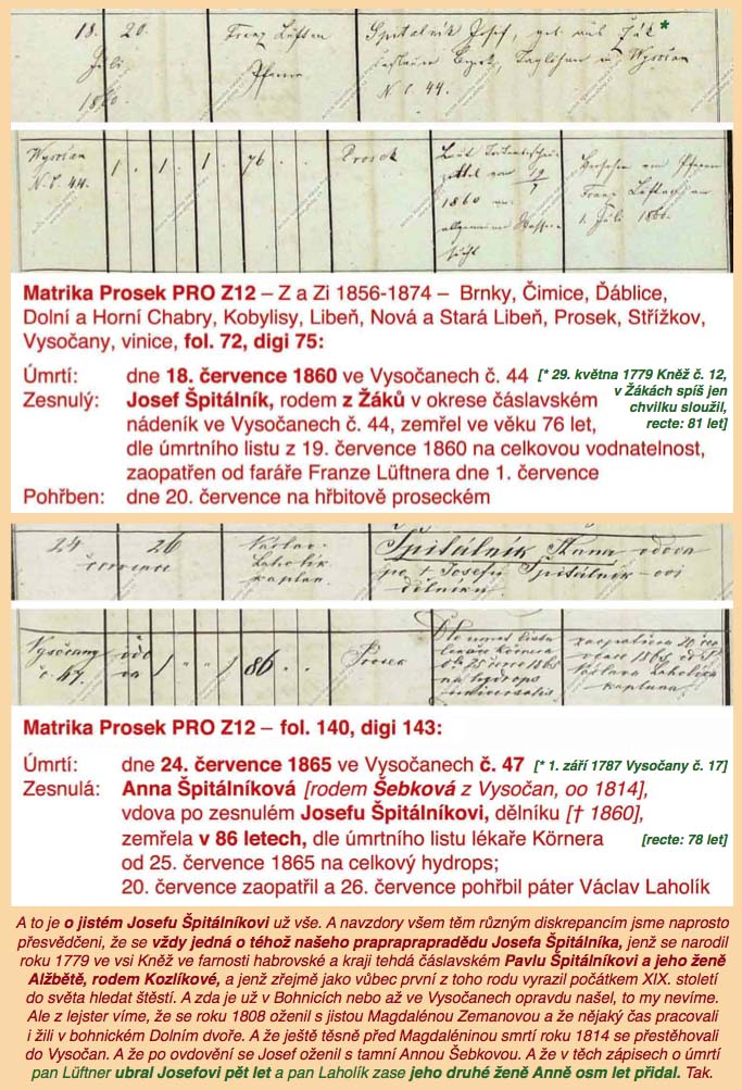 Navíc v tom zápisu o úmrtí mého prapraprapradědy Špitálníka ve Vysočanech jde nejspíše o omyl: