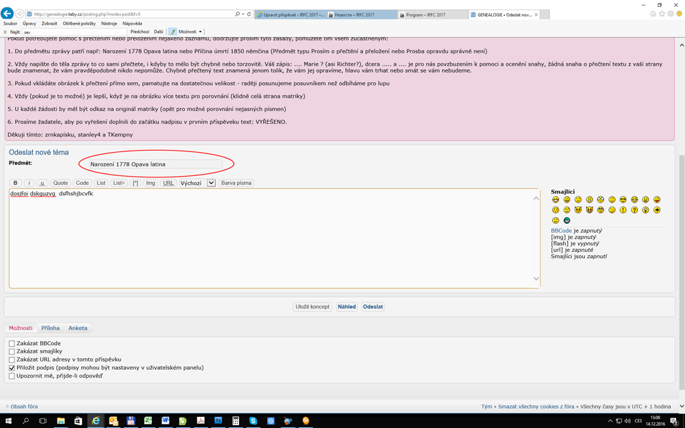 Pokud zadáváte nový příspěvek, dávejte do Předmětu vždy, čeho se příspěvek týká např. Narození 1778 Opava latina