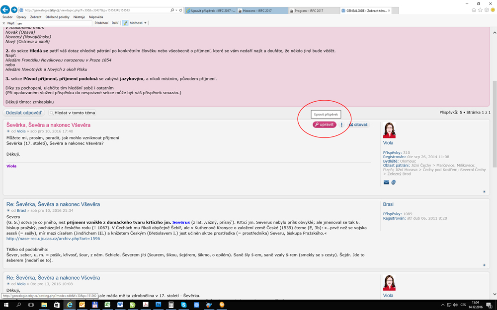 Pokud Předmět chcete později opravit (doplnit VYŘEŠENO), musíte pouze u prvního příspěvku, jde to přes Upravit vpravo nahoře u příspěvku.