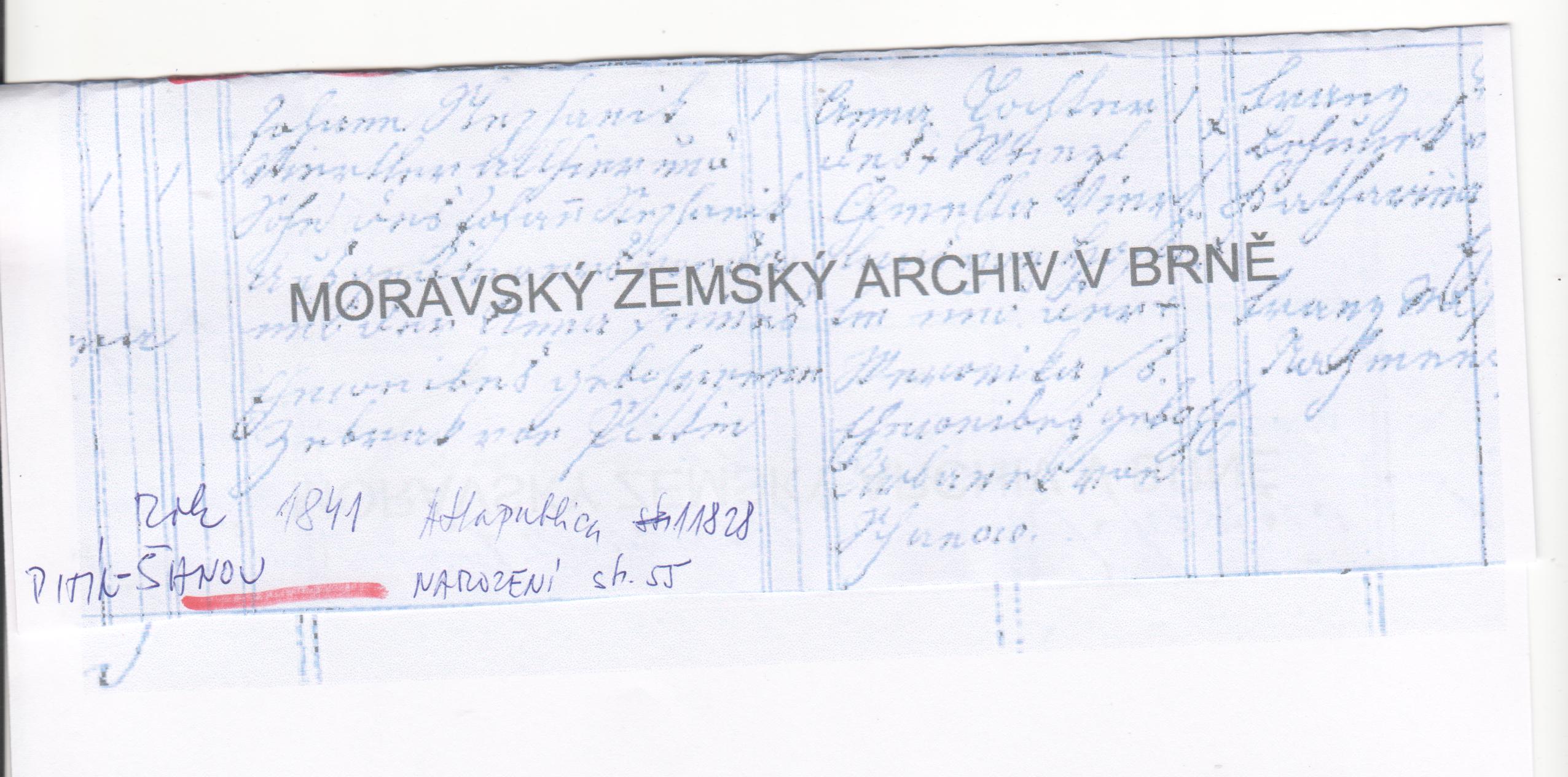 je tady prosím někdo, kdo by mi mohl pomoci s překladem nalezeného zápisu o narození?. Jedná se o Štefaníka - zřejmě Jana. Pokud nebude příloha čitelná, zápis o narození se nachází : Farnost Pitín, obec Šanov, 11828 str. 55.