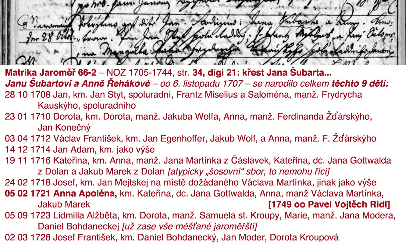 CZEC0004D_Matriky-Church-books-Nßchod-66-2-1705-1744_00058 píše:z Jaroměře, Die 6 pokržtieny František syn Jakuba Jelínka z Marie M(an)želky.