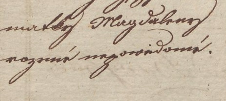 Matka: Magdalena rozena dcera Matěge ??Hort??ouzskýho z Michowyc neznami Mistr Travni